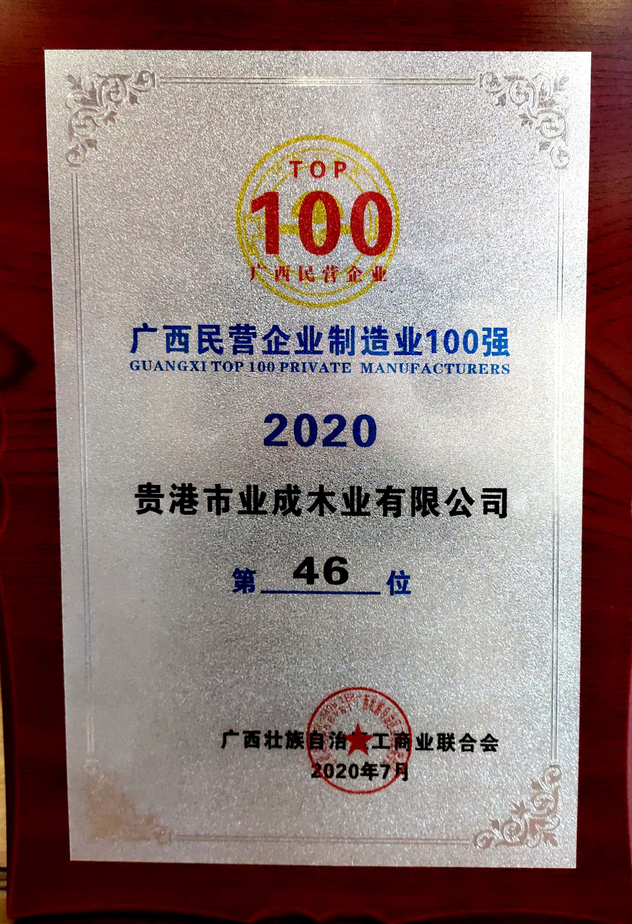 2020广西民营企业制造业100强